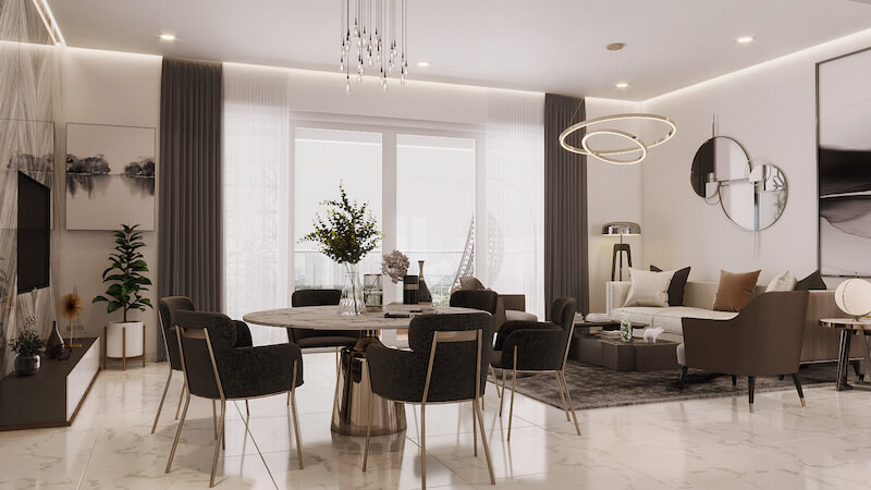 These residences are meticulously designed, crafted by esteemed architects, and boast a spectrum of amenities. These include British-themed walled gardens, infinity pools drawing inspiration from iconic global destinations, and a 12,000 Sq.Ft. clubhouse conceived by Andy Fisher Workshop. Additionally, the project features Japanese-themed rooftop gardens and an infinity pool bordering a beach park, promising residents an unparalleled living experience.